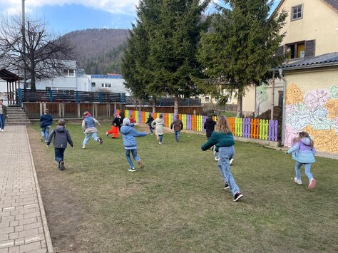 Außerdem gibt es monatlich einen anderen Schwerpunkt zur freien Gestaltung der Nachmittage, der von der Freizeitpädagogin angeboten wird. Spiele, Basteln und Bewegung im Freien stehen an der Tagesordnung. Vielen berufstätigen Eltern kann so, auch mit Unterstützung der Gemeinde, geholfen werden.