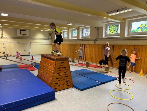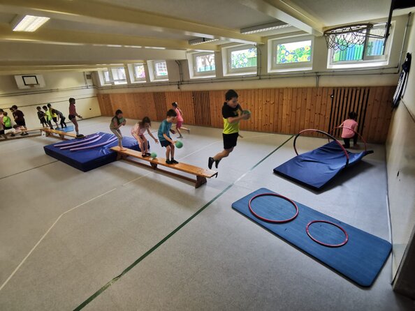 Der Schulsport bietet unseren Schülerinnen und Schülern eine abwechslungsreiche Möglichkeit, Fitness, Koordination und Teamgeist zu erleben. Im Turnunterricht stehen vielfältige Aktivitäten auf dem Programm: klassische Ballspiele, Gymnastik, Koordinations- und Kraftübungen sowie kreative Bewegungslandschaften sorgen dafür, dass jede Stunde spannend bleibt. Dabei werden motorische Fähigkeiten gefördert und die Freude an Bewegung gestärkt.