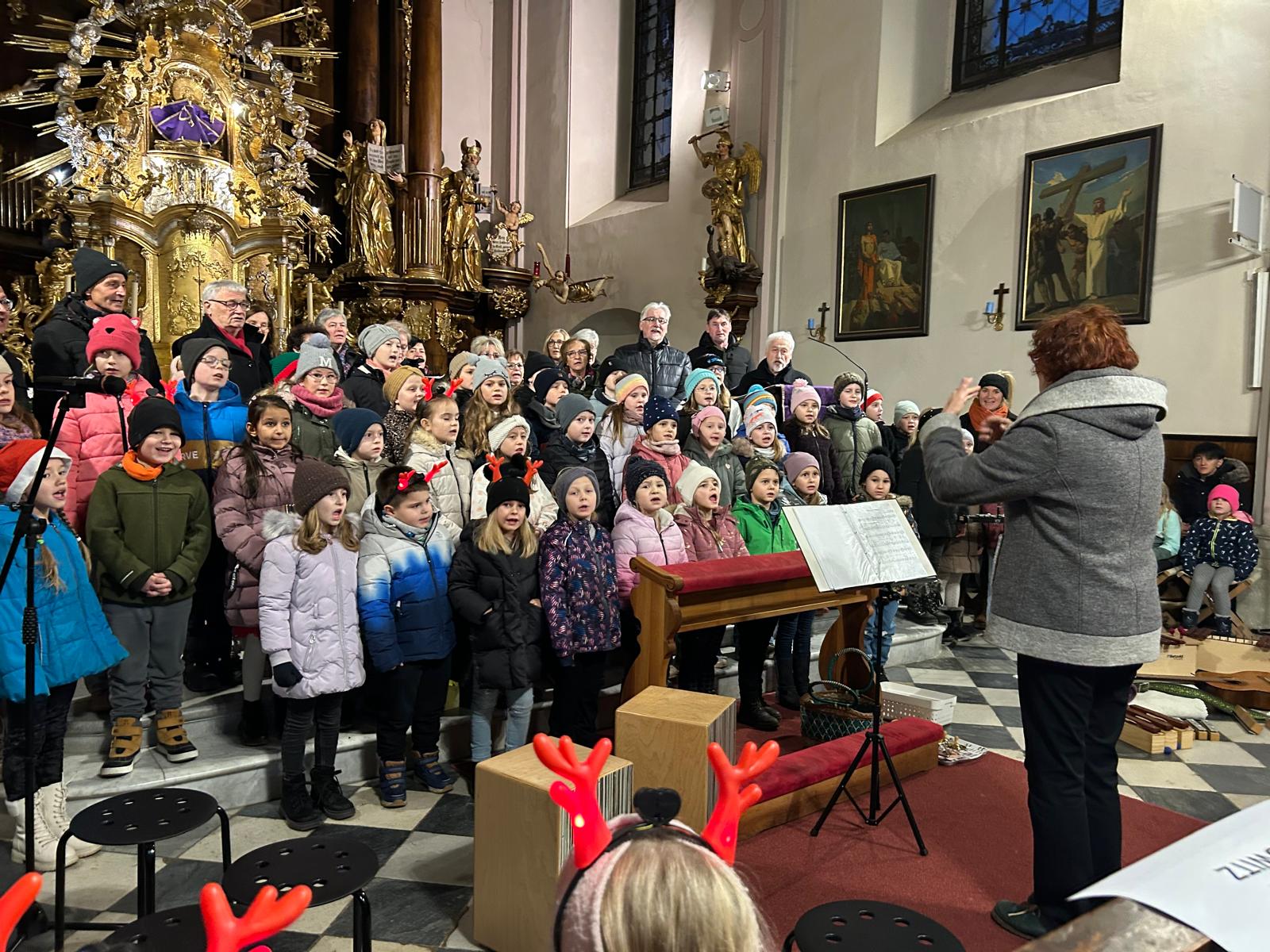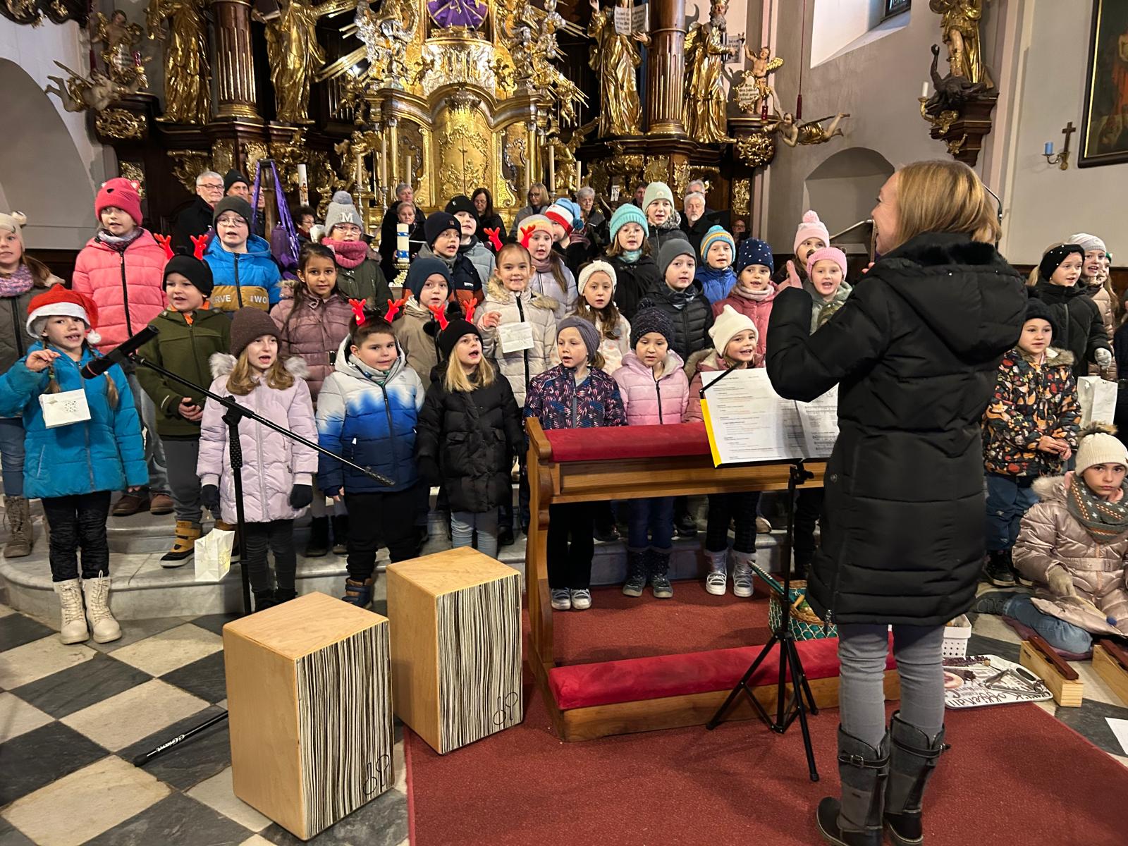 Mit viel Freude und spürbarer Hingabe sangen und musizierten unsere Chorkinder, begleitet von den Lehrerinnen Christina Mayrold-Kaucic und Christina Schober. Mit klaren Stimmen sowie Orff-Instrumenten, Querflöten und einer Klarinette verzauberten sie alle Zuhörerinnen und Zuhörer.