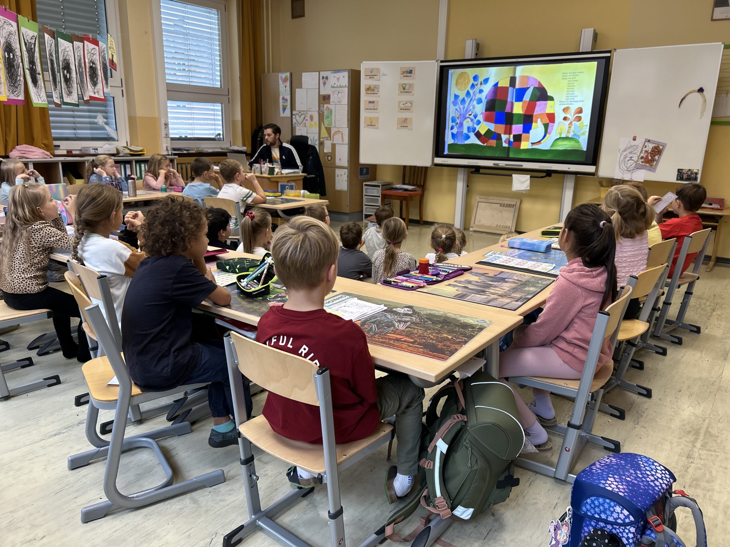 Fächerübergreifend beschäftigten sich die Kinder der 1a und 1b Klasse mit der Geschichte von Elmar. Zuerst hörten die Kinder die Geschichte vom bunten Elefanten und anschließend fand eine Diskussionsrunde über das „Anderssein“ statt. Zum Abschluss gestaltete jedes Kind seinen bunten, ganz besonderen Elmar.