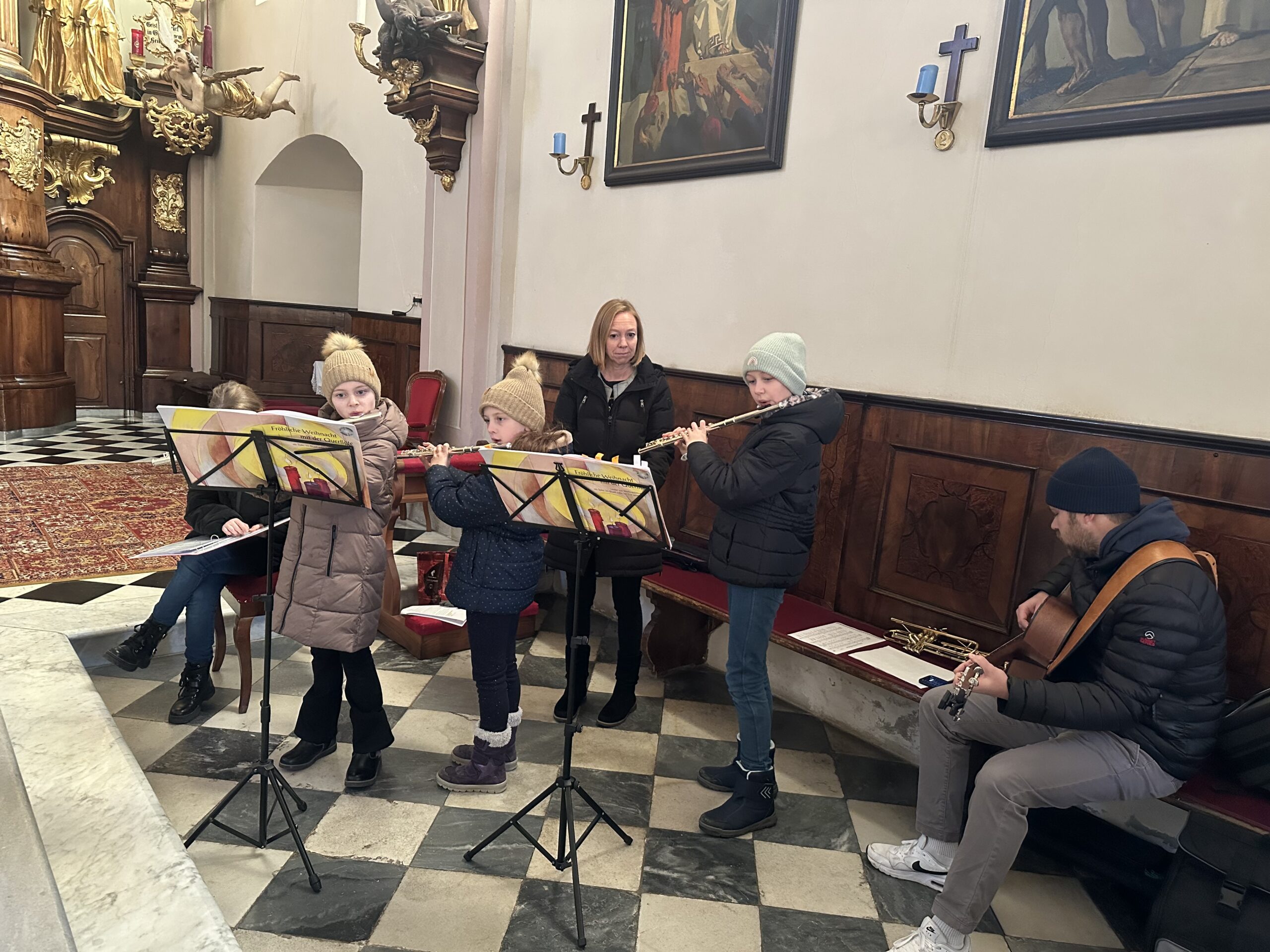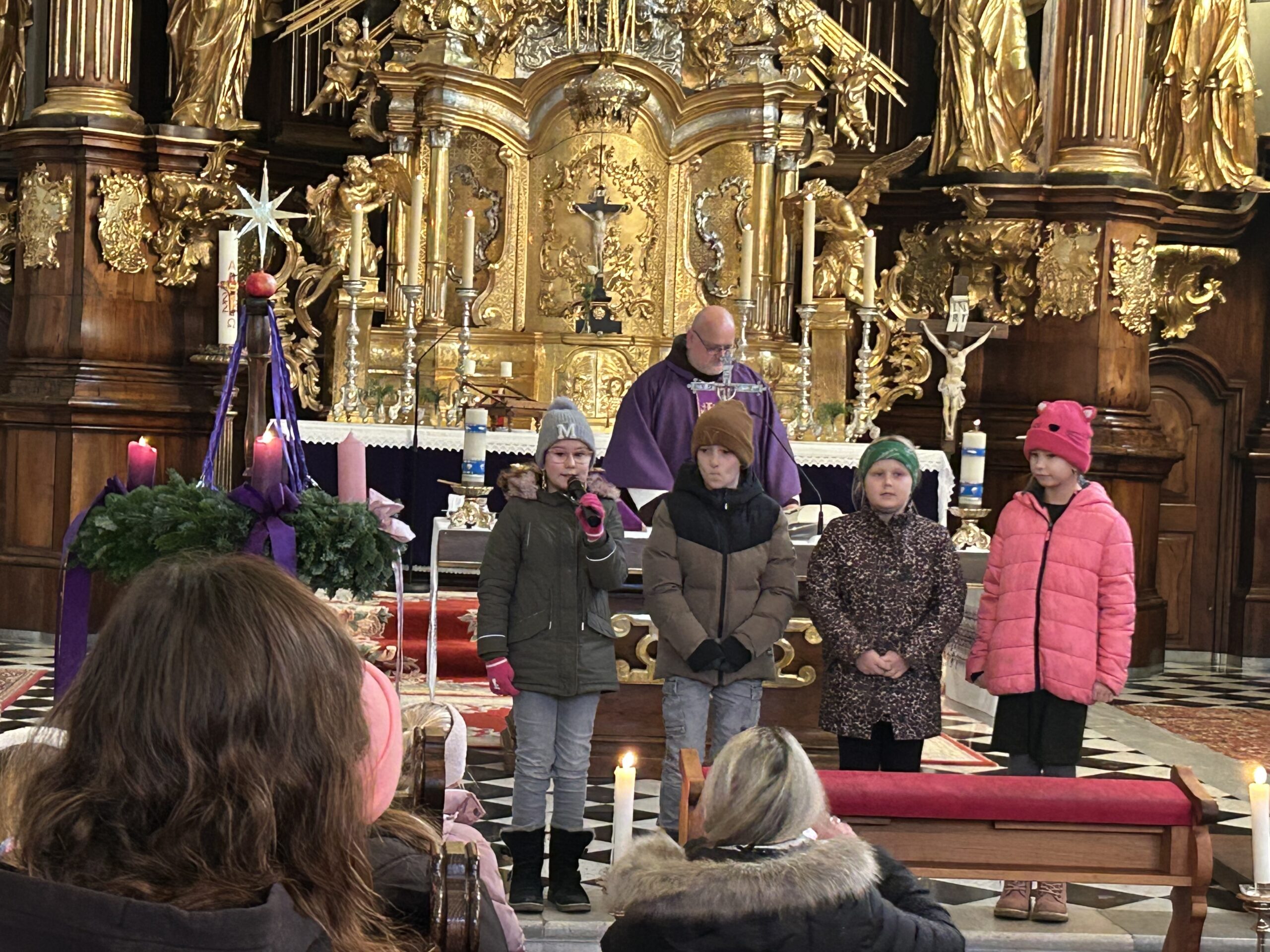 Musikalisch umrahmt wurde die Feier von Harmonika, Querflöten, Trompete und Klarinette, gespielt mit Freude. Auch die Lehrpersonen Herr Fuchs und Frau Mayrold-Kaucic unterstützten die Kinder aktiv. Bruder Elias und Religionslehrerin Frau Janach gestalteten die Rorate wieder besonders stimmungsvoll und gaben der Feier ihren warmen, spirituellen Rahmen.