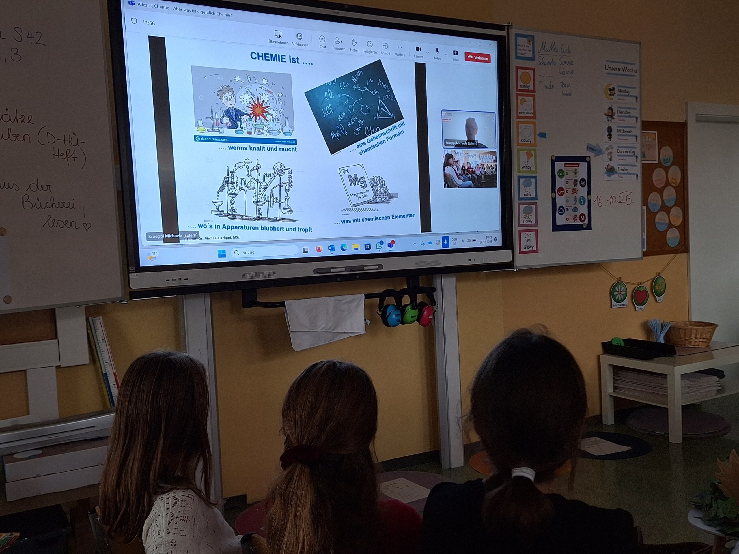 Die 3a und 3b Klasse durften heute in einem spannenden online Meeting viel Wissenswertes über Chemie im Alltag erfahren.