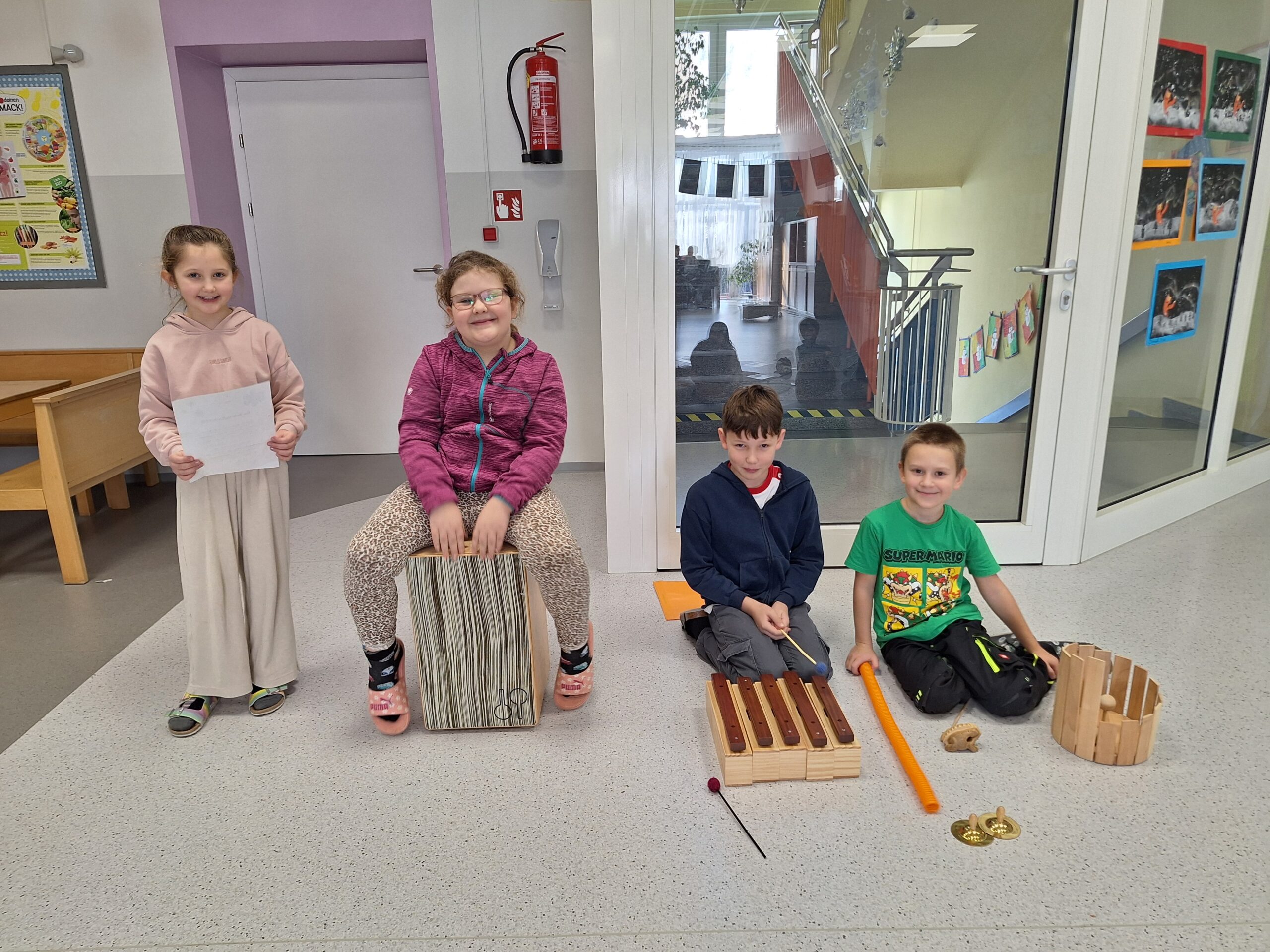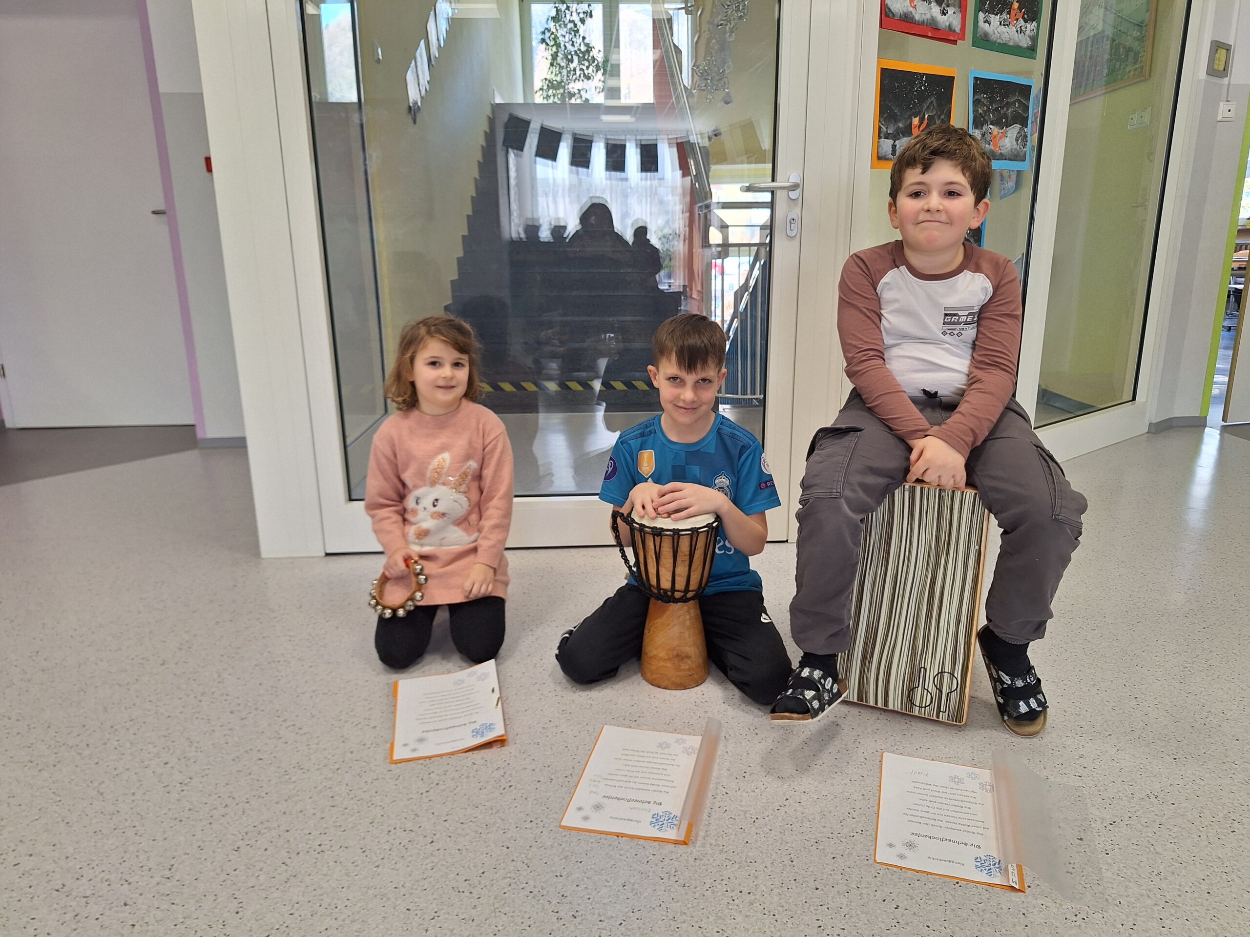 Die 2a Klasse vertonte das Gedicht „Die Schneeflockenfee“ klanglich und probierte dabei unterschiedlichste Rhythmus- und Melodieinstrumente aus.
