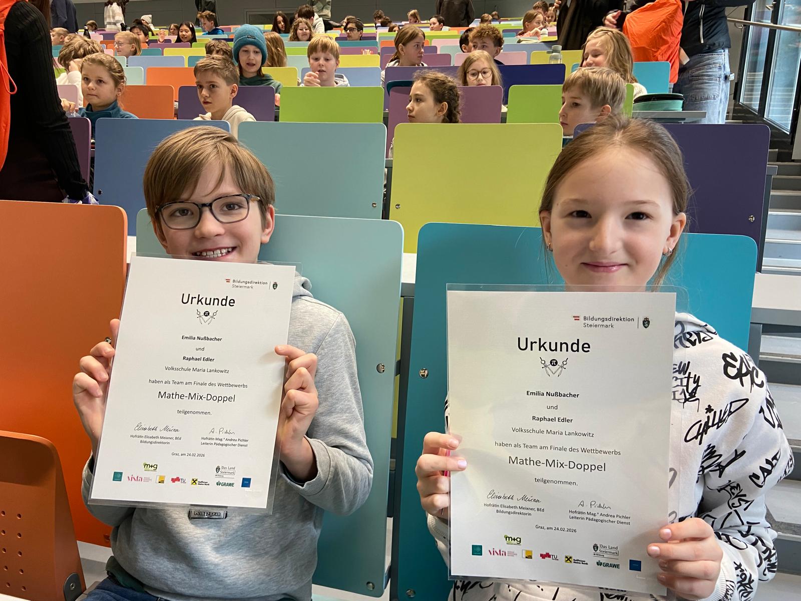 Am 24. Februar 2026 fand an der Universität Graz das große Finale des Teamwettbewerbs „Mathe-Mix-Doppel“ statt. Dabei knobelten jeweils zwei Kinder gemeinsam an spannenden Mathematikaufgaben. Teamarbeit und kluges Nachdenken standen im Mittelpunkt.