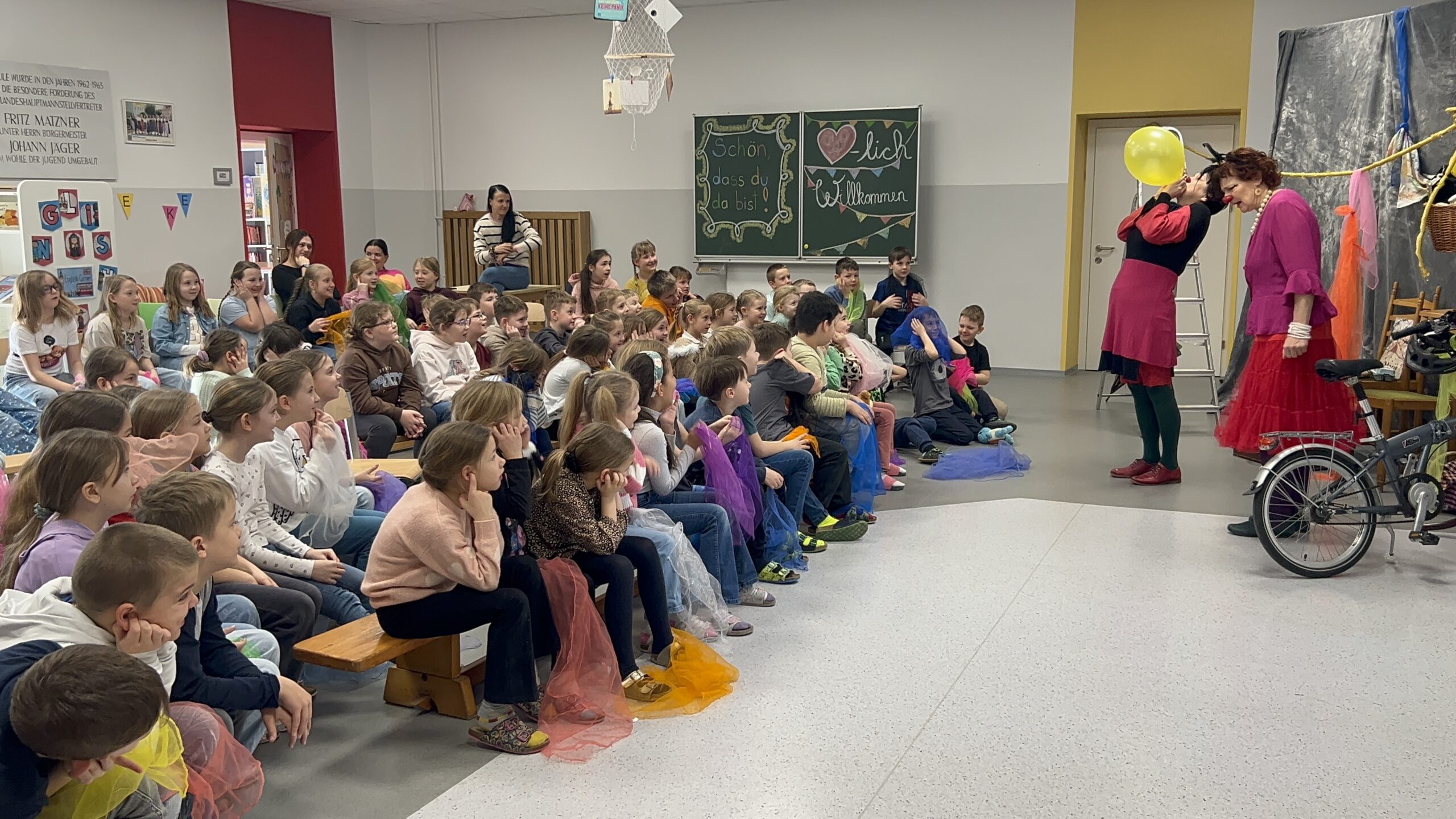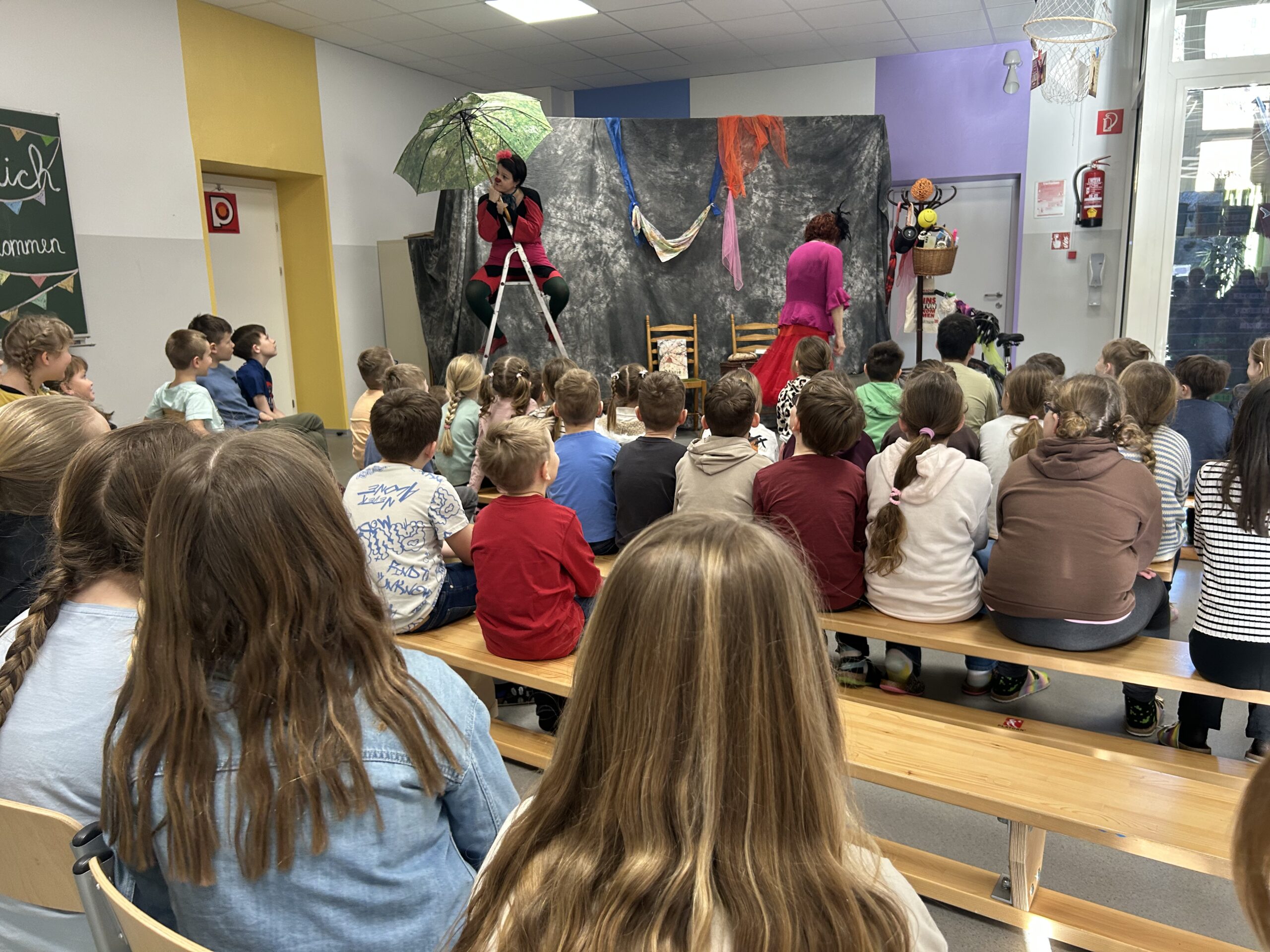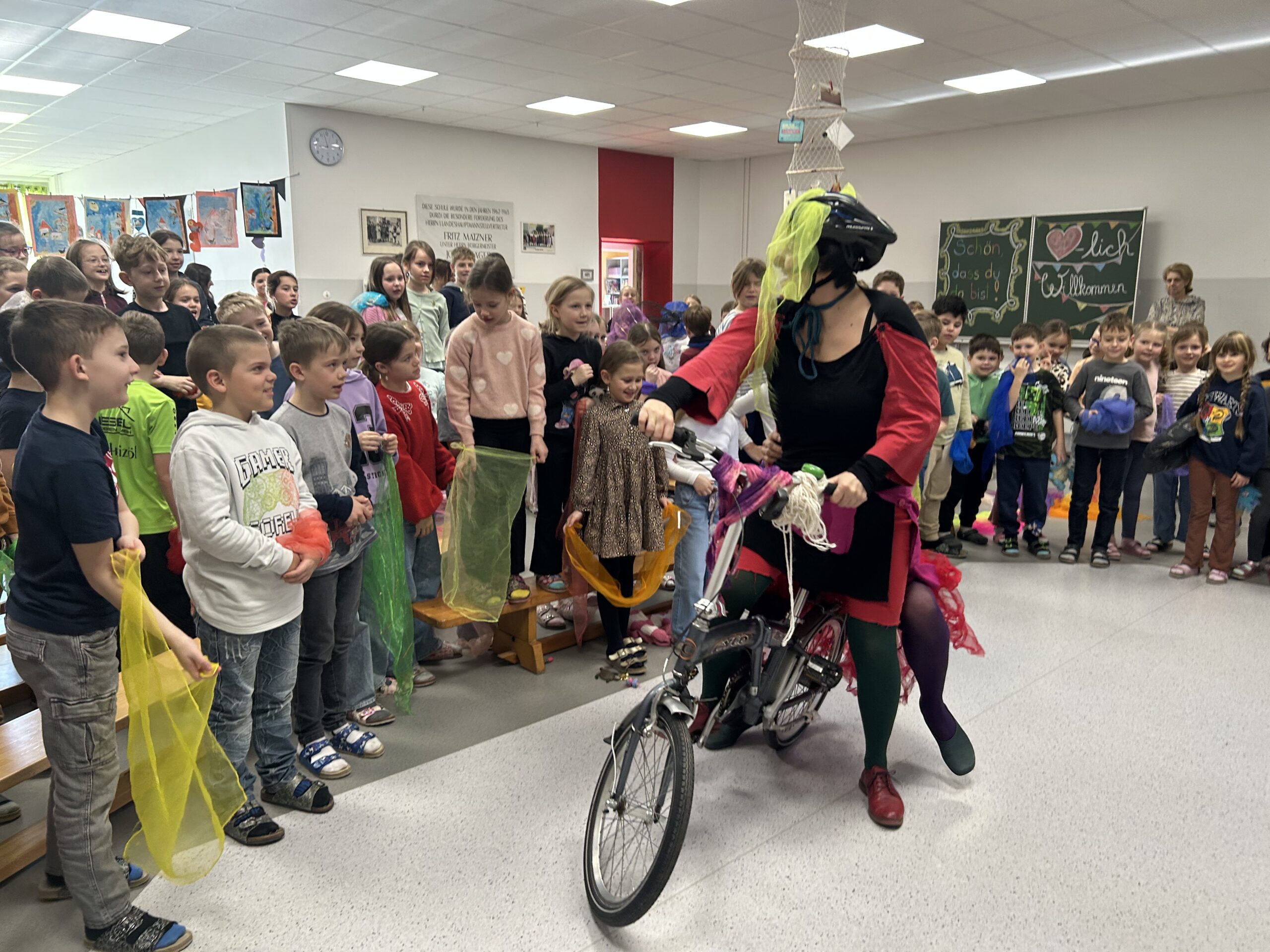 Als Clownin Aurora begeisterte Ida Hafner gemeinsam mit Boròka Müller-Pal in ihrer Rolle als Clownin Cami unser junges Publikum mit einem liebevoll gestalteten Theaterstück über Zusammenhalt, Verbundenheit und das Miteinander. Mit viel Einfühlungsvermögen und Humor vermittelten die beiden Künstlerinnen, wie wertvoll Nachhaltigkeit und ein achtsamer Umgang miteinander sind.