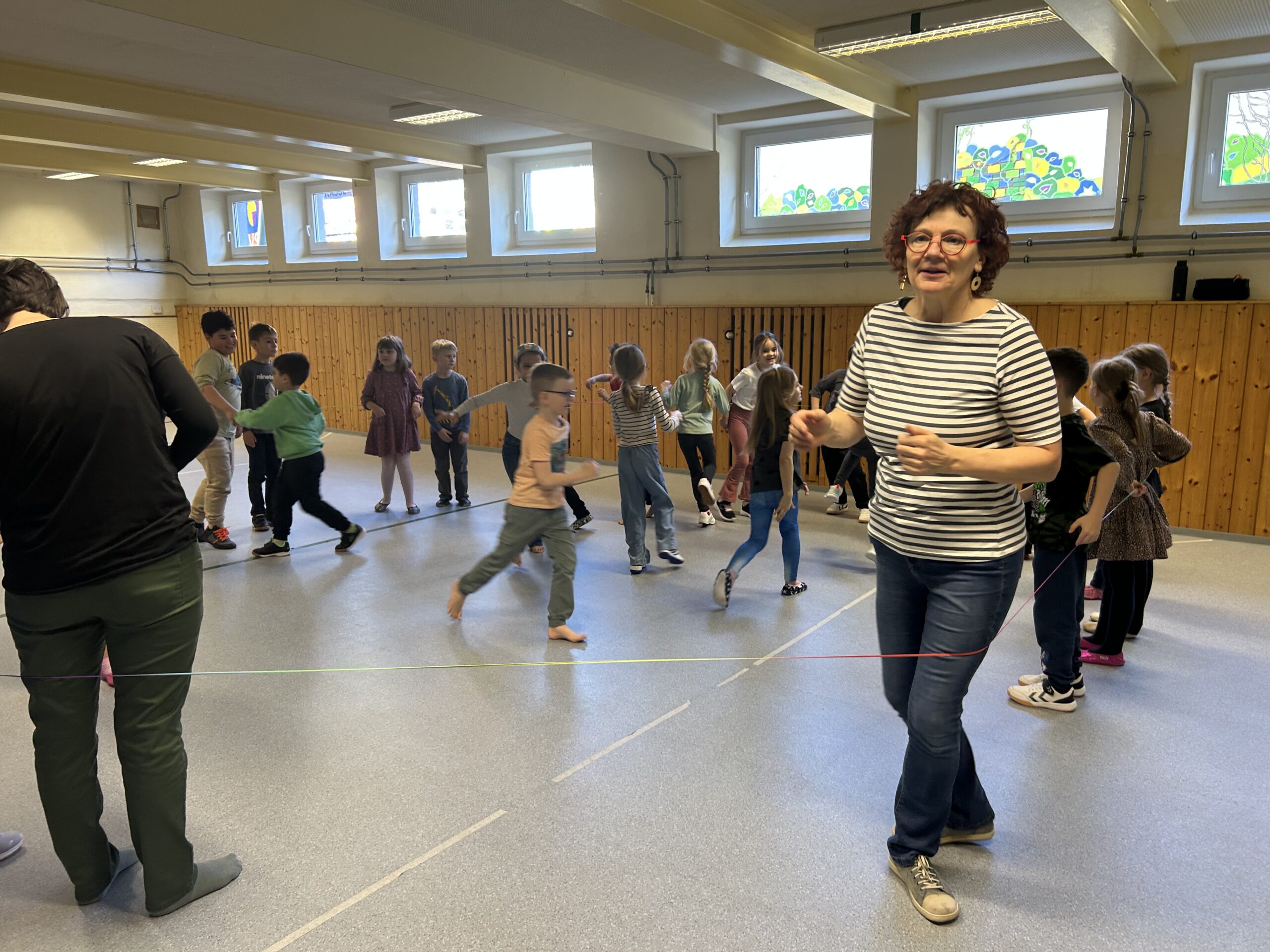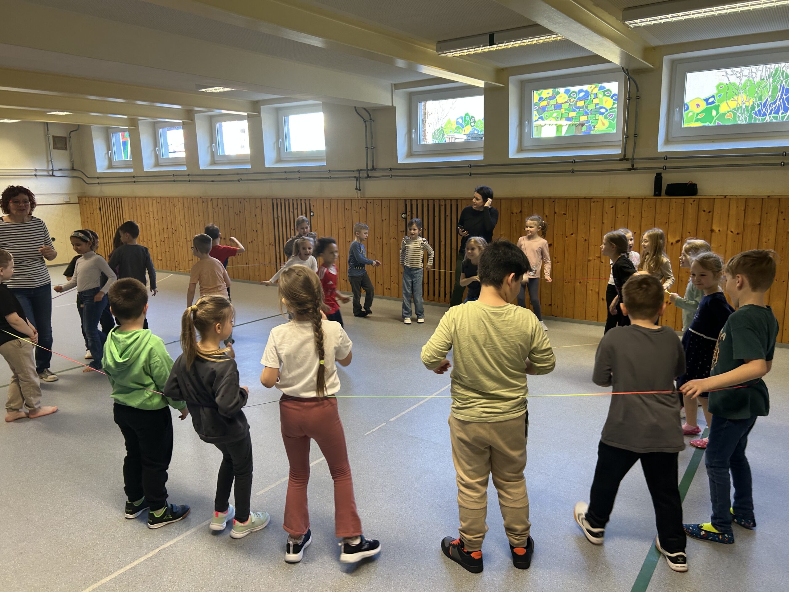 Neben dem Theaterstück luden die beiden Damen die Kinder zu gemeinsamen Bewegungsspielen ein, bei denen Teamgeist und Kooperation im Mittelpunkt standen. Mit großer Freude wurden außerdem Stoffsackerl kreativ bemalt – jedes ein ganz persönliches Kunstwerk.