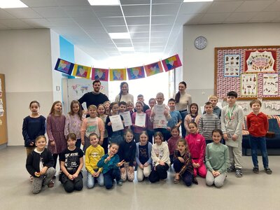 alte Posts: Erfolge & Talente Con Brio Musikwettbewerb Jennifer Rotschädl hat beim Con Brio Musikwettbewerb mit der Klarinette mitgemacht. Außerdem spielt sie in der Band Tinitus. Wir freuen uns sehr mit… Weiterlesen Schachmeisterschaft Wir gratulieren Mila und Sarah Nußbacher herzlich zu ihren großartigen Erfolgen! Weiterlesen Hobby Horsing Hobby Horsing-Wettbewerb in Wien. Wir gratulieren Tabea sehr herzlich zu ihren Erfolgen! Weiterlesen Schulcrosslauf Bezirksmeisterschaften Schulcrosslauf am 8.10.2025 Am Mittwoch, dem 8. Oktober 2025, fand in Bärnbach der Schulcrosslauf statt. Die Volksschule Maria… Weiterlesen Judo-Wettbewerb Amelie Stotz nahm erfolgreich am Judo-Wettbewerb im Bezirk Voitsberg teil. Herzlichen Glückwunsch zu ihrer tollen Leistung. Weiterlesen Schachmeisterschaft Mila Nußbacher und ihre Schwester Sarah Nußbacher haben erfolgreich an der Schachmeisterschaft in Bärnbach teilgenommen. Wir gratulieren den beiden zu… Weiterlesen digi:comp 4 Digitale Kompetenzen: Unsere 4. Klassen erfolgreich dabei! Die Schülerinnen und Schüler der 4. Klassen der Volksschule Maria Lankowitz haben… Weiterlesen Radrennen – City Spring Am 21.6. nahm Karla Weber (1. Klasse) bei der Alpentour in Schladming, einem sehr anspruchsvollen Radrennen, teil.Beim City Sprint belegte Karla den… Weiterlesen Junior-Leistungsabzeichen Gratulation an Jennifer Rotschädl! Jennifer spielt seit nur neun Monaten B-Klarinette und hat bereits das Junior-Leistungsabzeichen erfolgreich… Weiterlesen Pinguin Cup & Schwimmmeisterschaften Am Dienstag, dem 7. Mai 2025, fanden in der Therme Nova die Bezirksschwimmmeisterschaften der Volksschulen und der Pinguin Cup statt. Betreut von… Weiterlesen Prima la musica Erfolgreiche Teilnahme beim Jugendmusikwettbewerb „prima la musica“ Drei Schülerinnen der Volksschule Maria Lankowitz wurden beim… Weiterlesen Steirische Schulmeisterschaften – Mountainbike „Mit voller Energie dabei – die Volksschule Maria Lankowitz bei den Steirischen Schulmeisterschaften Mountainbike 2025!“ Am 28. April 2025 fand am… Weiterlesen Känguru der Mathematik: 2. Klassen Am 21. März 2025 haben die Kinder der 2. Klassen am Känguru-Wettbewerb der Mathematik teilgenommen. Der Känguru-Wettbewerb ist ein internationaler… Weiterlesen Schachlandesmeisterschaften U8 Wir sind stolz darauf, dass Sarah Nußbacher unsere Schule bei den Steirischen Schachlandesmeisterschaften U8 am 16. März 2025 in Leibnitz vertreten… Weiterlesen