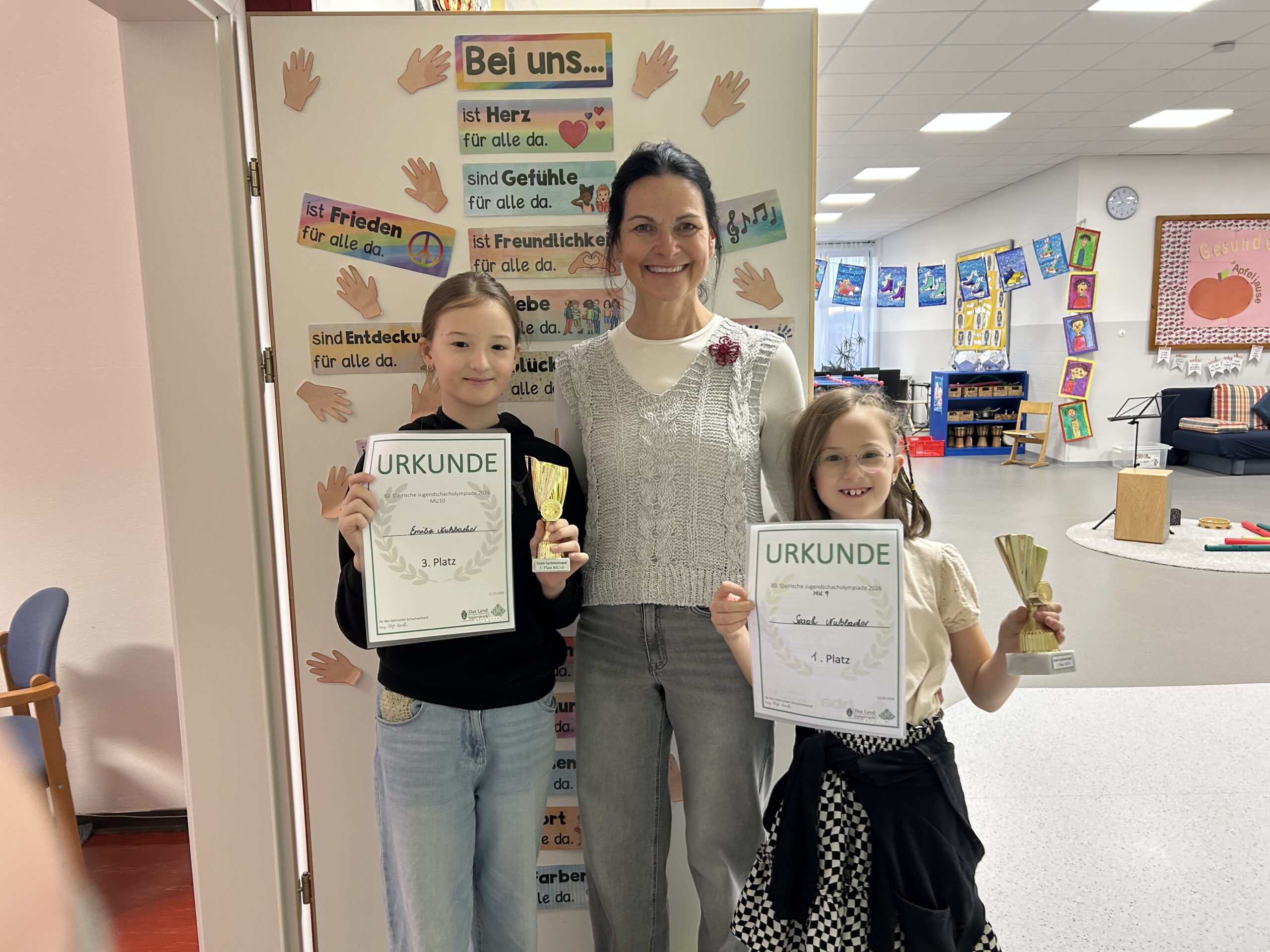 Mila Nußbacher und ihre Schwester Sarah Nußbacher haben erfolgreich an der Schachmeisterschaft in Bärnbach teilgenommen. Wir gratulieren den beiden zu ihren tollen Leistungen.